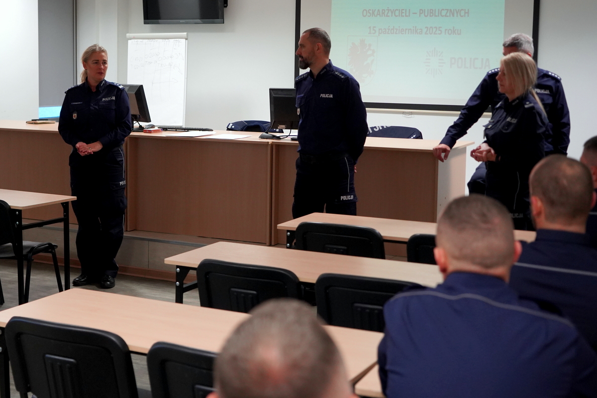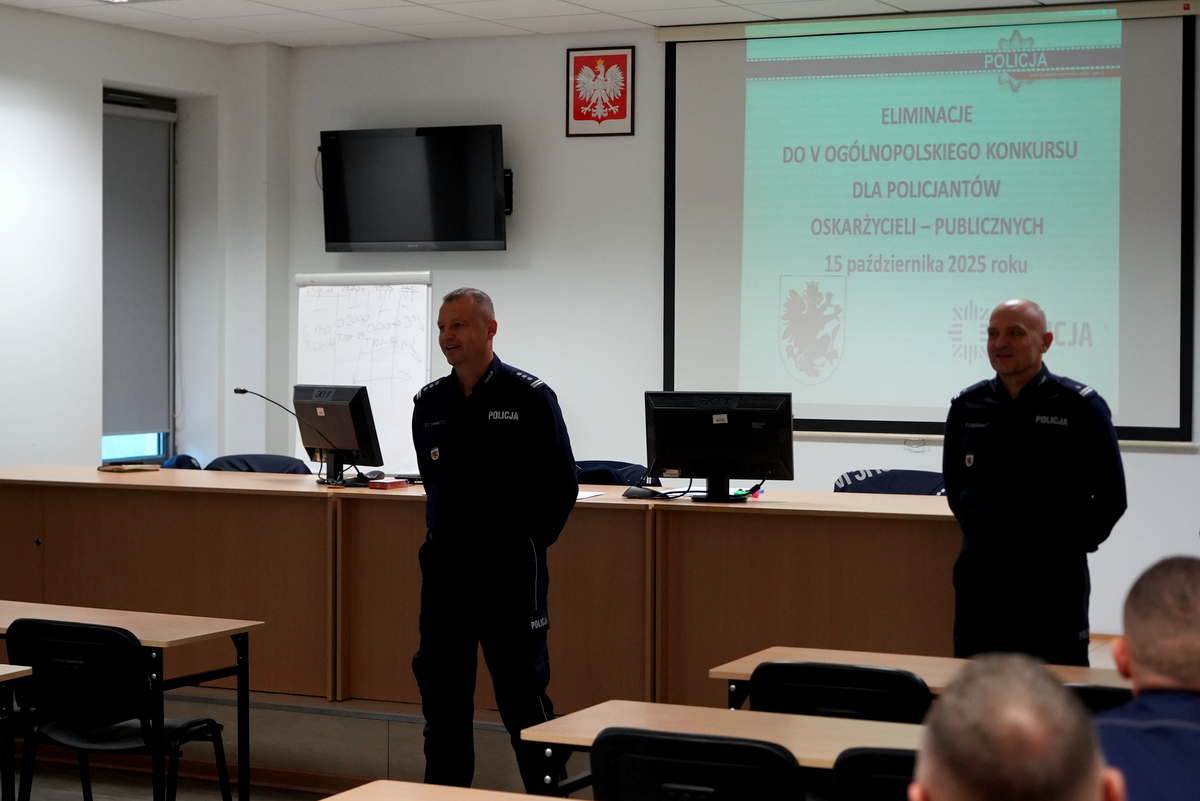 W salach wykładowych na terenie Komendy Wojewódzkiej Policji w Bydgoszczy policjanci-oskarżyciele publiczni zostali poddani ocenie w dwóch konkurencjach: