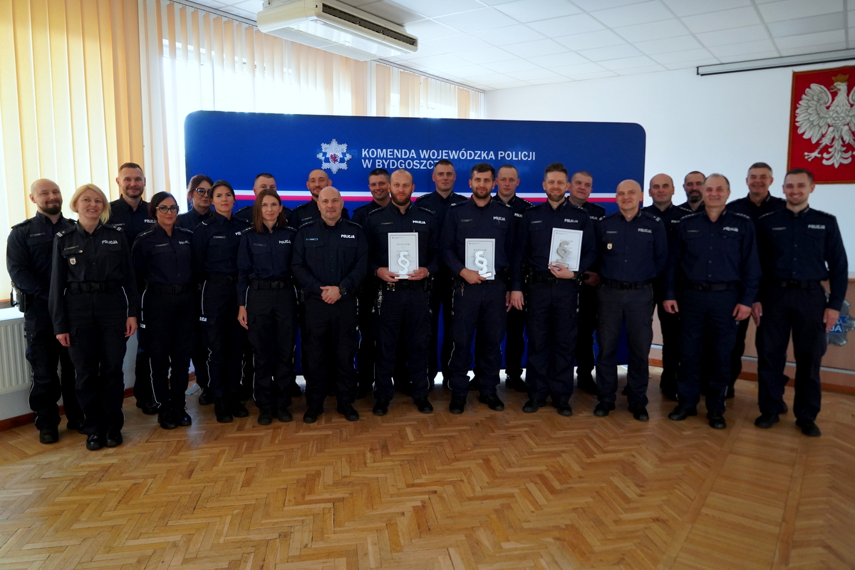 Laureaci zostali uhonorowani dyplomami i nagrodami ufundowanymi przez Komendanta Wojewódzkiego Policji w Bydgoszczy inspektora Jakuba Gorczyńskiego, które w imieniu Szefa kujawsko-pomorskich policjantów wręczył Zastępca Komendanta Wojewódzkiego Policji w Bydgoszczy inspektor Jacek Witas.