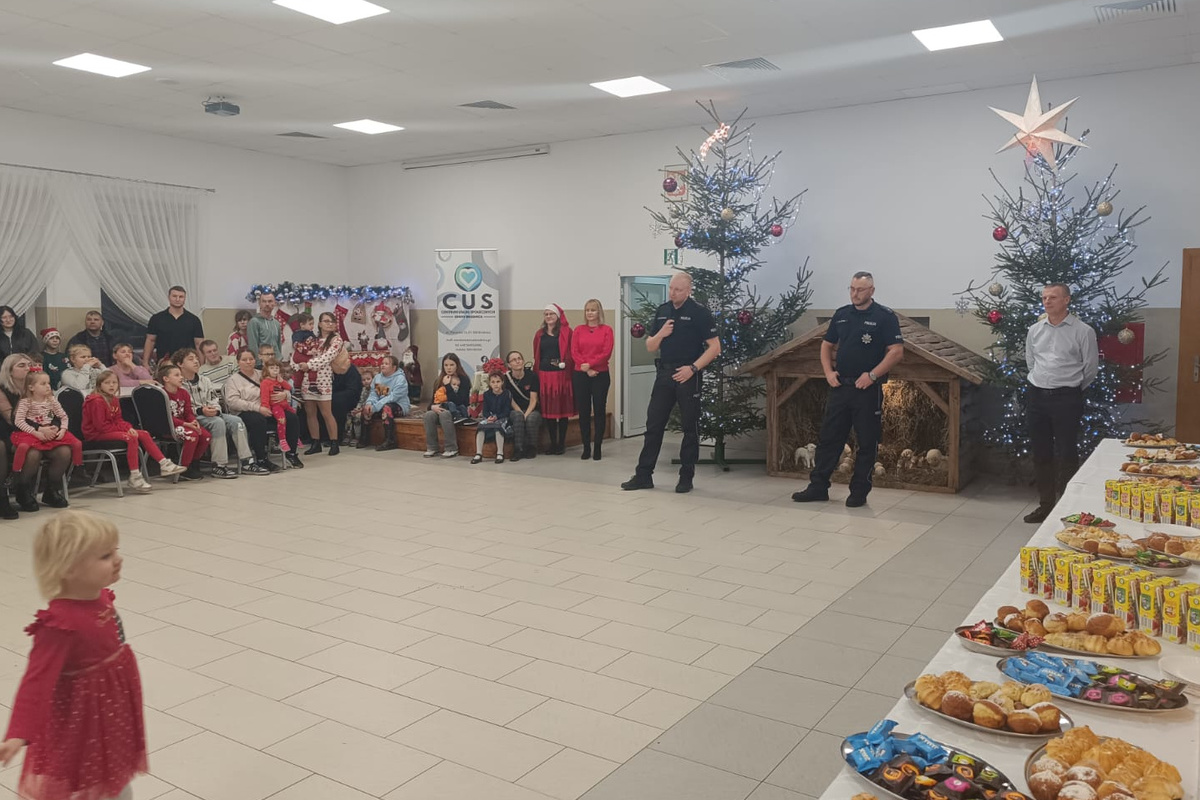 Policjanci na spotkaniu mikołajkowym