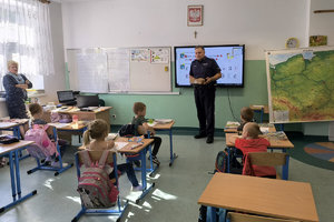 Dzielnicowi z wizytą w szkołach, edukują najmłodszych uczestników ruchu drogowego